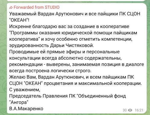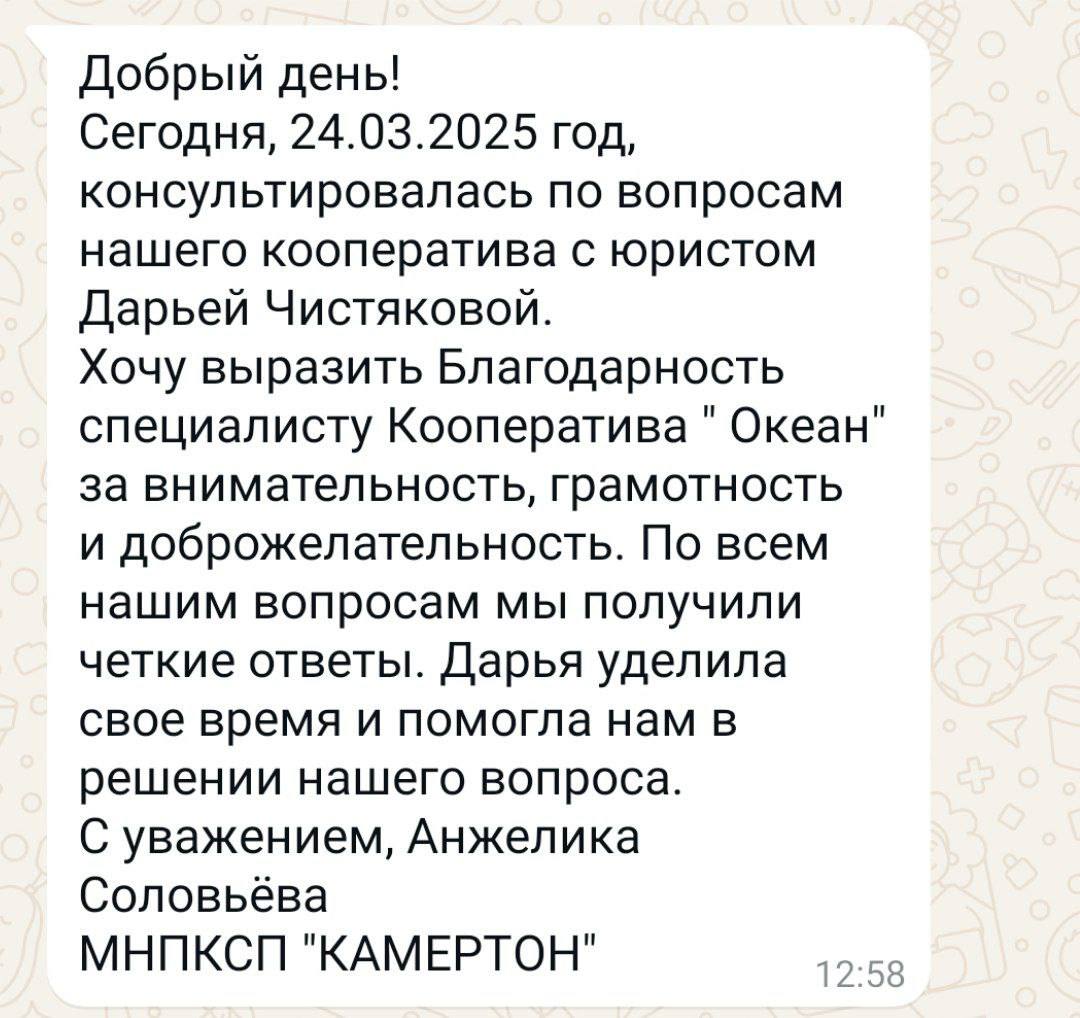 Разовые встречи или абонентское сопровождение для кооперативов любого уровня.
