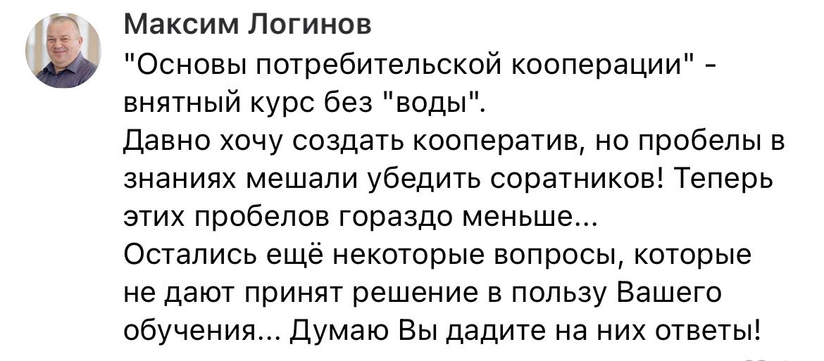 Курс охватывает ключевые аспекты правового регулирования, налогообложения, автоматизации процессов, работы с пайщиками и построения устойчивой кооперативной модели.